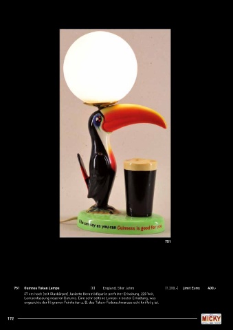 751 Guinnes Tukan Lampe (0) England, 50er Jahre (1.200,-) Limit Euro: 400,-