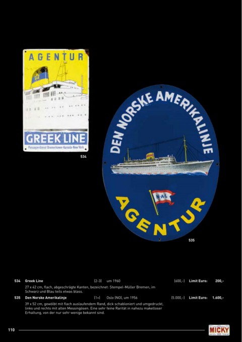 535 Den norske Amerikalinje (1+) Oslo (NO), um 1956 (5.000,-) limit Euro: 1.600,-