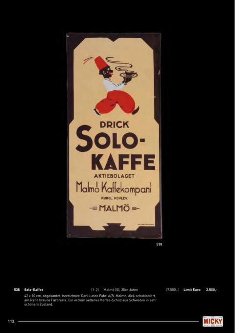 538 Solo-Kaffee (1-2) Malmö (S), 30er Jahre (7.500,-) limit Euro: 2.500,-