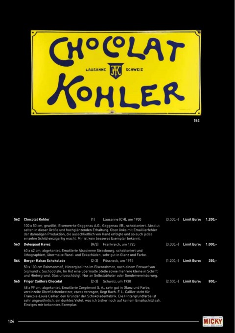 562 Chocolat Kohler (1) Lausanne (CH), um 1900 (3.500,-) limit Euro: 1.200,-