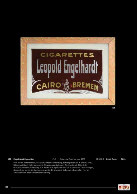 608 Engelhardt Cigaretten (1+) Cairo und Bremen, um 1900 (1.500,-) limit Euro: 500,-