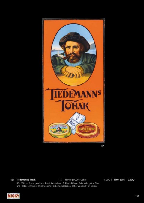 624 Tiedemann‘s Tobak (1-2) Norwegen, 20er Jahre (6.000,-) limit Euro: 2.000,-