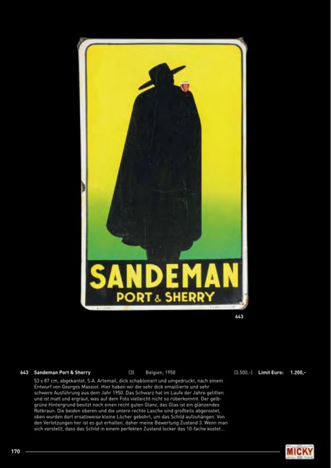 643 Sandeman Port & Sherry (3) Belgien, 1950 (3.500,-) limit Euro: 1.200,-
