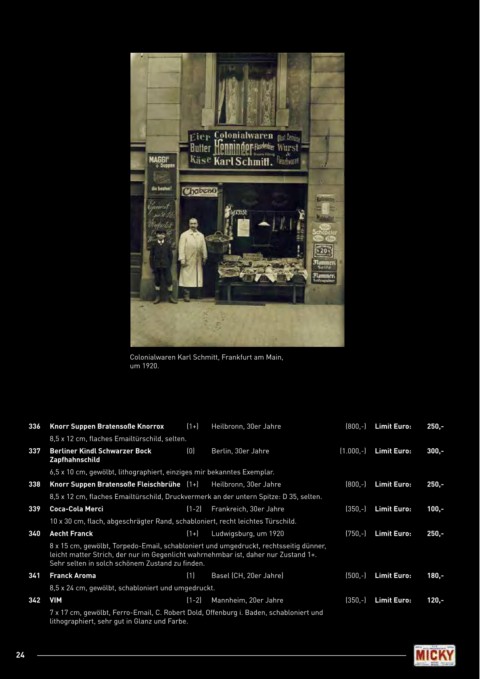 338 Knorr Suppen Bratensoße Fleischbrühe (1+) Heilbronn, 30er Jahre (800,-) limit Euro: 250,-
