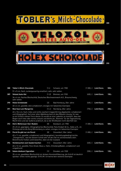 388 Tobler‘s milch-Chocolade (1+) Schweiz, um 1900 (1.500,-) limit Euro: 500,-