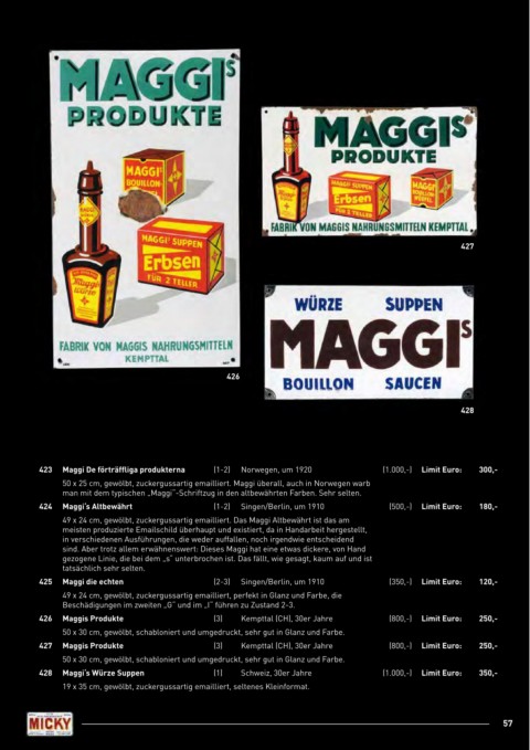 428 maggi‘s Würze Suppen (1) Schweiz, 30er Jahre (1.000,-) limit Euro: 350,-