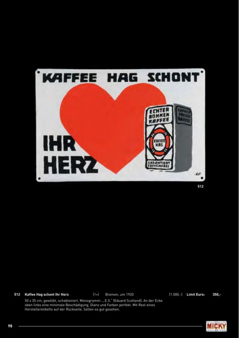 512 Kaffee Hag schont Ihr Herz (1+) Bremen, um 1920 (1.000,-) limit Euro: 350,-