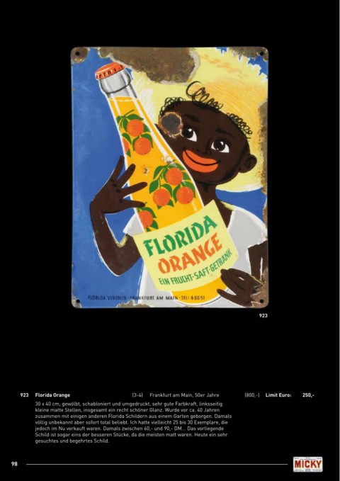 923 Florida Orange (3-4) Frankfurt am Main, 50er Jahre (800,-) Limit Euro: 250,-