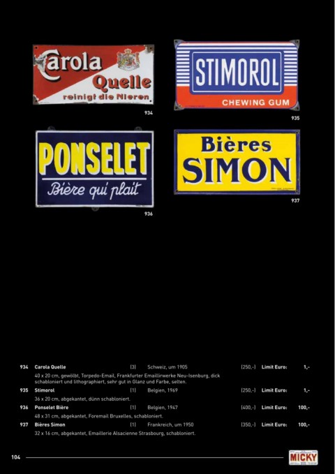 937 Bières Simon (1) Frankreich, um 1950 (350,-) Limit Euro: 100,-