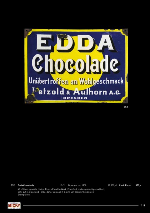952 Edda Chocolade (2-3) Dresden, um 1900 (1.200,-) Limit Euro: 350,-
