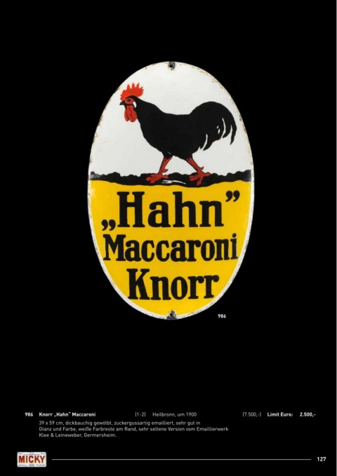 986 Knorr „Hahn“ Maccaroni (1-2) Heilbronn, um 1900 (7.500,-) Limit Euro: 2.500,-