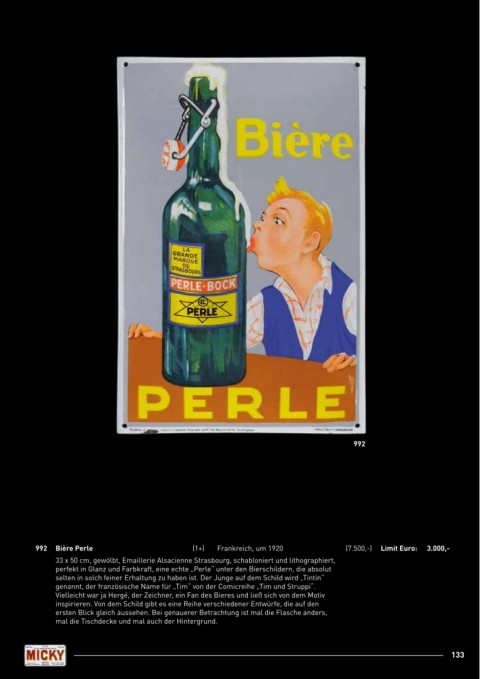 selten in solch feiner Erhaltung zu haben ist. Der Junge auf dem Schild wird „Tintin“