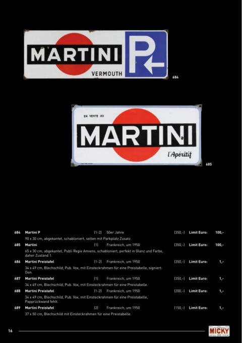 688 Martini Preistafel (1-2) Frankreich, um 1950 (200,-) Limit Euro: 1,-