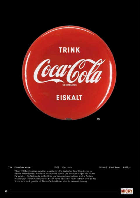 796 Coca-Cola eiskalt (1-2) 50er Jahre (3.500,-) Limit Euro: 1.000,-