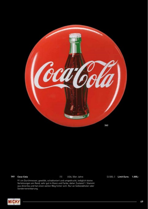 797 Coca-Cola (1) USA, 50er Jahre (3.500,-) Limit Euro: 1.000,-