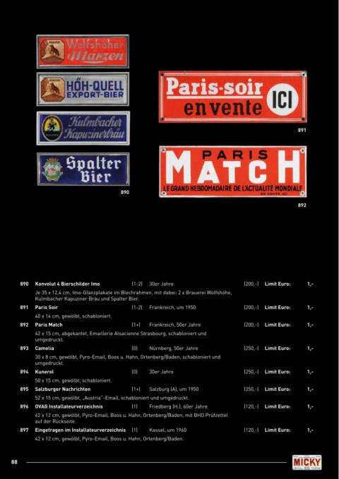 890 Konvolut 4 Bierschilder Imo (1-2) 30er Jahre (200,-) Limit Euro: 1,-
