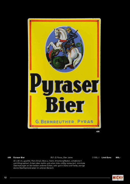 408 Pyraser Bier (R/1-2) Pyras, 30er Jahre (1.500,-) limit Euro: 800,-