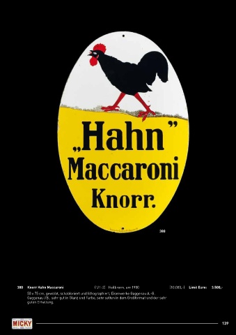 380 Knorr Hahn Maccaroni (1/1-2) Heilbronn, um 1900 (10.000,-) Limit Euro: 3.500,-