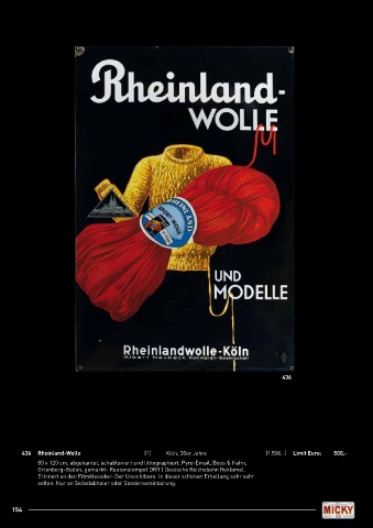 436 Rheinland-Wolle (1) Köln, 30er Jahre (1.500,-) Limit Euro: 500,-