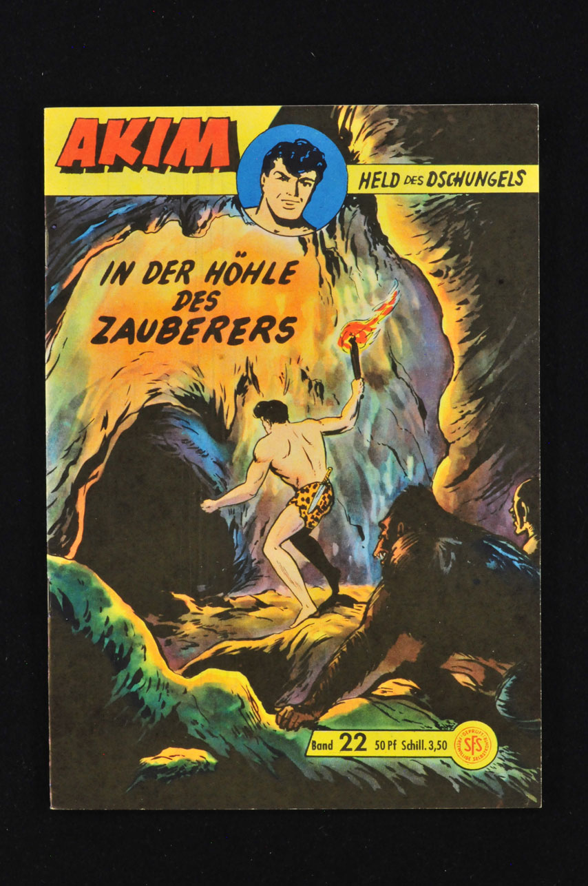 Akim Held des Dschungels Nr. 22 Am Falz im Schwarz an drei kleinen Stellen mit Kuli nachkoloriert, sonst absolut klasse - unbedingt vorbesichtigen.