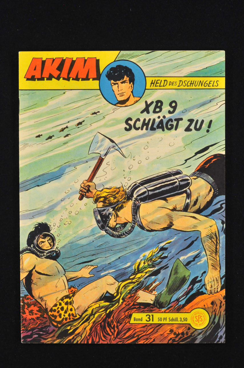 Akim Held des Dschungels Nr. 32 Am Falz an der unteren Klammer minimal mit Kuli nachkoloriert, sonst top. Unbedingt vorbesichtigen.