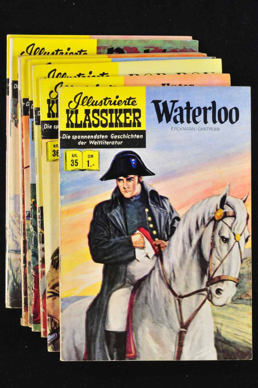 Illustrierte Klassiker Nr. 1 1. Auflage. Falz unten 1,8 cm aufgeplatzt, Knickspuren rechts oben und Druckstellen am Cover, wo das Heft einmal als Schreibunterlage für die Mathehausaufgaben diente.