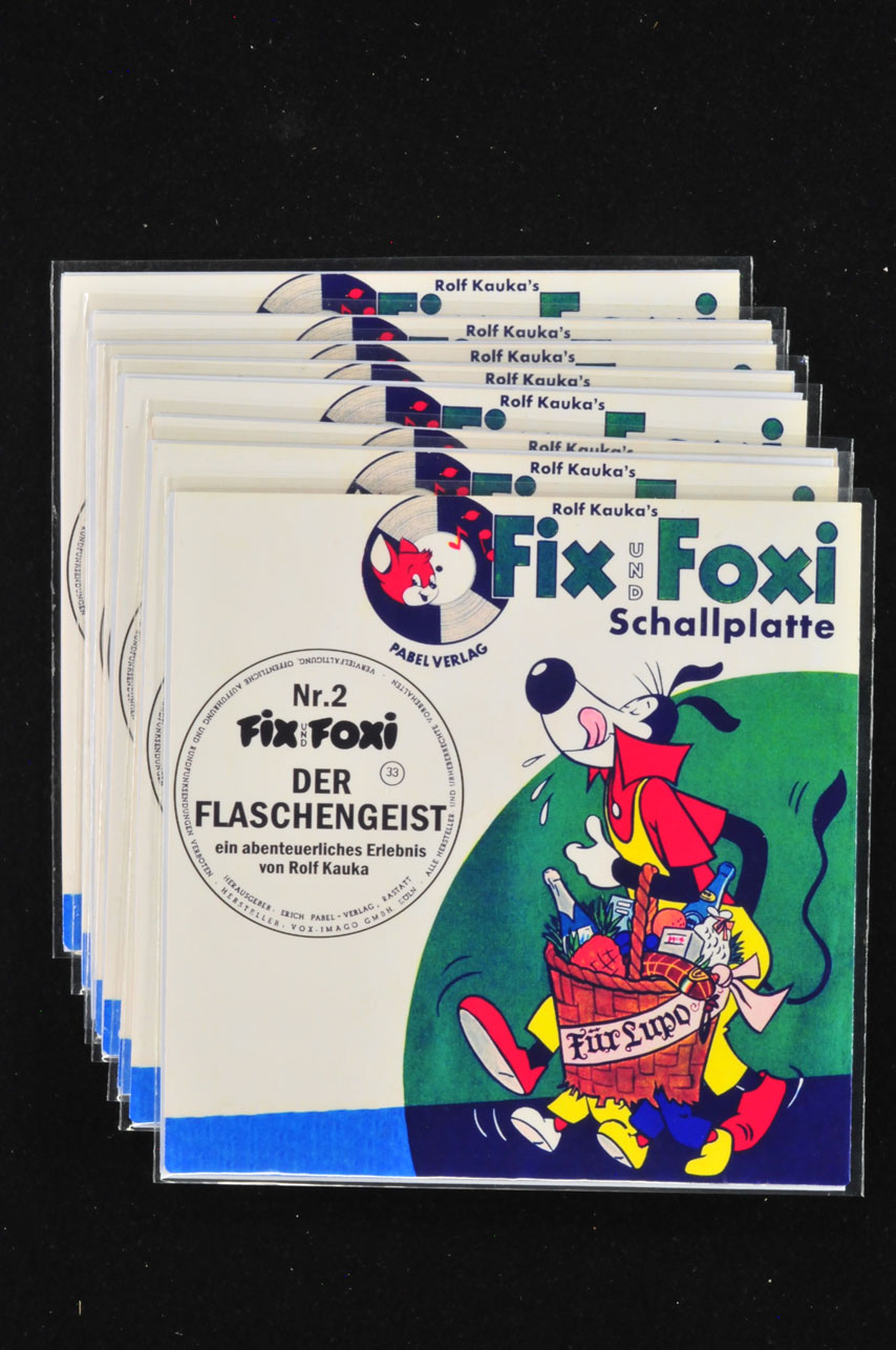 Fix und Foxi Konv. 8 Schallfolien in Hülle Die Schallfolien 2, 3, 5, 6, 7, 8, 11 und 13 jeweils in einer sehr hübschen selbstdesignten Plattenhülle.