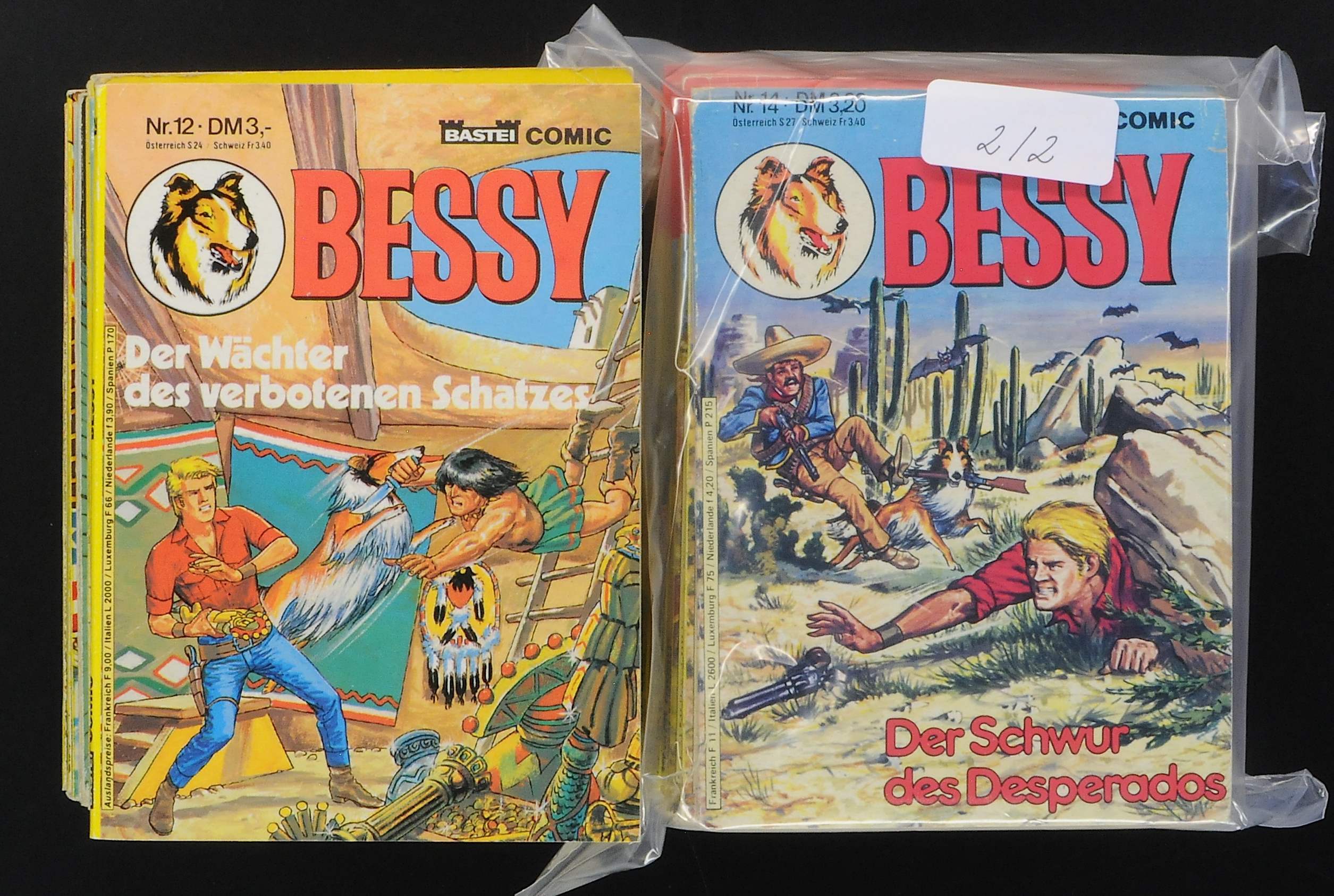 Bessy Konvolut 15 Hefte Hefte 86-100 um Zustand 2/2-3. Der Schnitt bleibt gleich, aber die Bandbreite ist größer, sodass sich hier auch ein paar sehr feine Hefte darunter befinden.