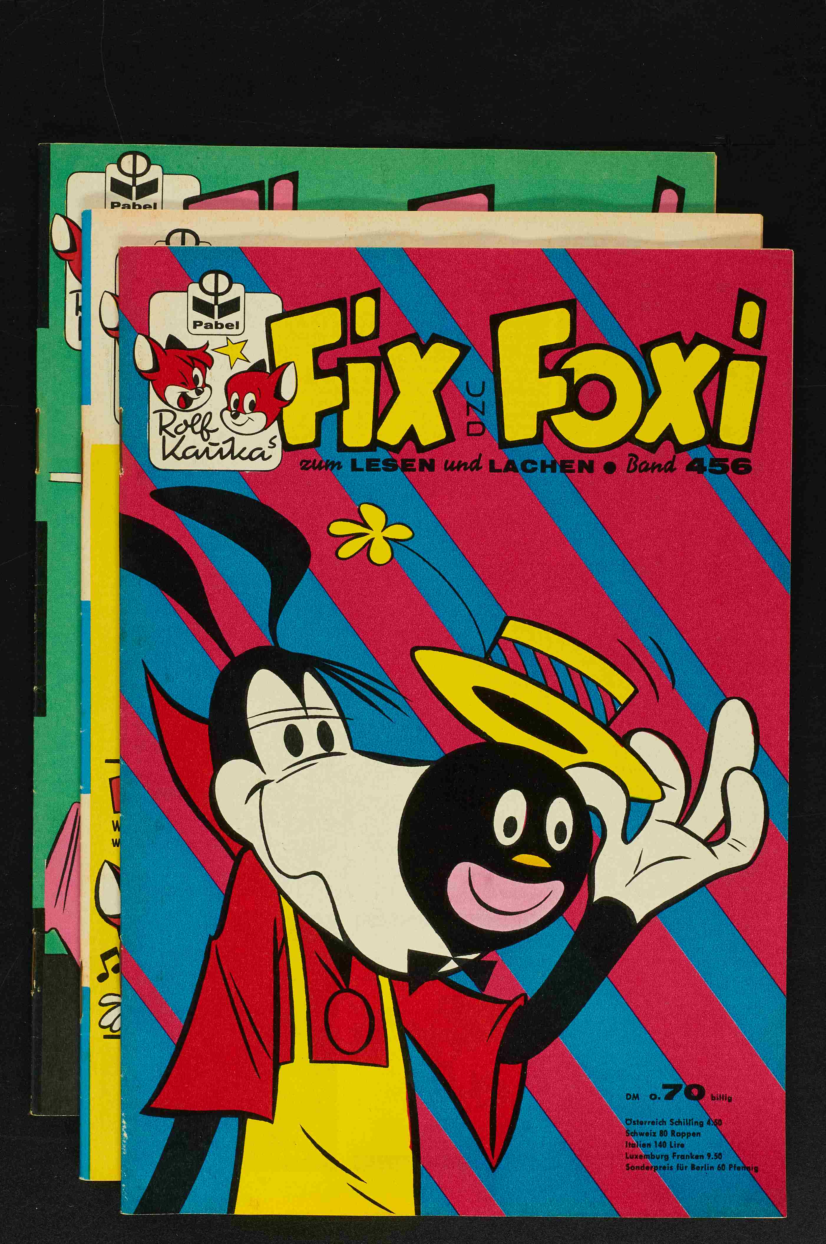 Fix und Foxi Nr. Konvolut 4 Stk. Hefte 224 um (1/1-2), 460 (1-2), 461 um (1), 505 um (1-2), wunderschöne, brettsteife Hefte. Kleine Aneckungen, wenige mini Farbblitzer oder ein unsauberer Schnitt, der eine mini Farbabsplitterung verursacht hat, sind vorhanden. |