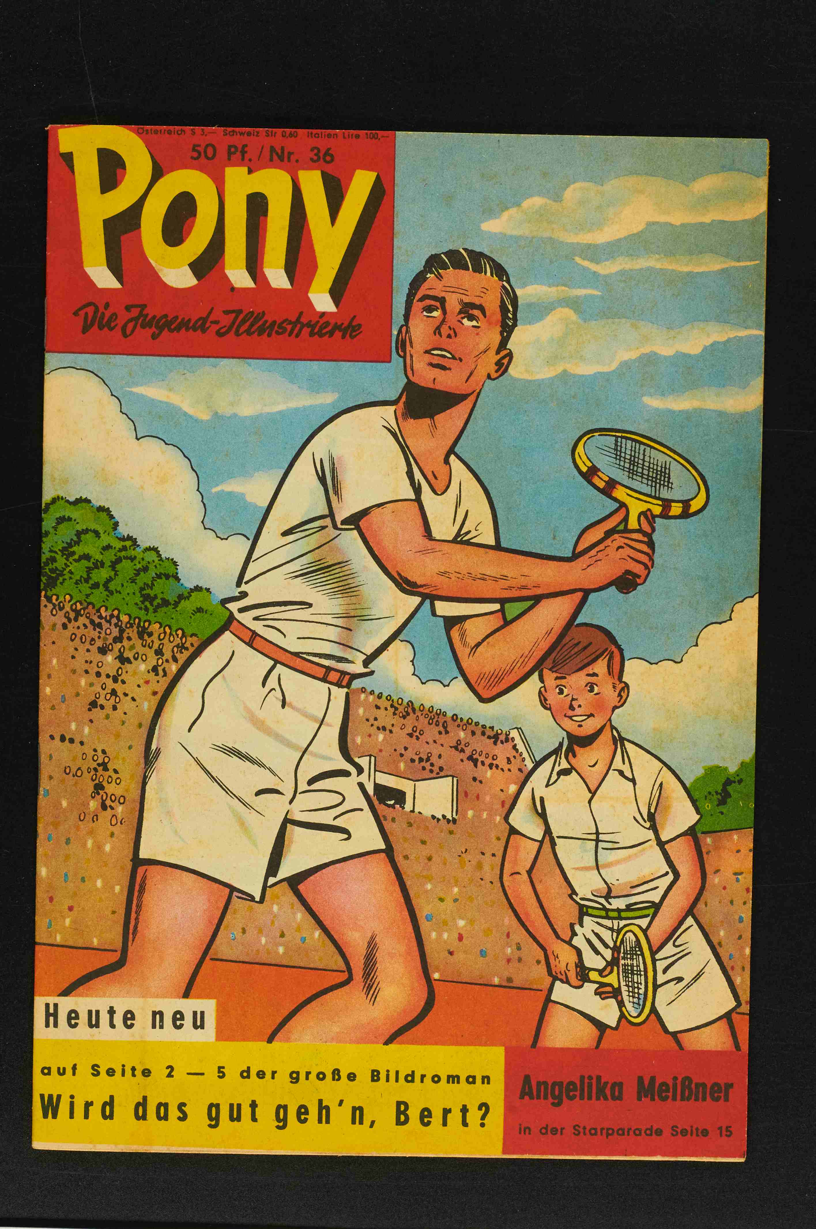 Pony Nr. 36 Lagerbedingt wird eine deutlich bessere Bewertung verwehrt. Das Kleinod wirkt kaum genutzt, liegt briefmarkenflach auf, die Papierspannung ist neuwertig erhalten, mit 2 Seiten Bessy und 3 Seiten Tim u. Struppi "Die sieben Kristallkugeln". Am Aufgang der Rückseite finden sich leichte Druckspuren, ein Einriss von ca. 3 mm und ein Blitzer. Das Cover zeigt leichte Lagerfleckenbildung, die eine deutlich bessere Bewertung verhindert.