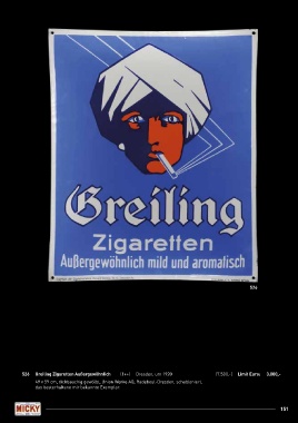 526 526 Greiling Zigaretten Außergewöhnlich (1++) Dresden, um 1920 (7.500,-) Limit Euro: 3.000,- 49 x 59 cm, dickbauchig gewölbt, Union Werke AG, Radebeul-Dresden, schabloniert, das besterhaltene mir bekannte Exemplar. 151