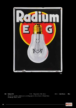 248 248 Radium E G (1-2) Wipperfürth, 20er Jahre (800,-) Limit Euro: 300,- 30 x 40 cm, gewölbt, schabloniert und lithographiert, Ferro-Email, C. Robert Dold, Offenburg i. Baden, selten. 66