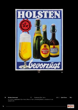 30 30 Holsten bevorzugt (1) Hamburg, 50er Jahre (400,-) Limit Euro: 150,- 31 x 40 cm, abgekantet, Pyro-Email, Boos u. Hahn, Ortenberg/Baden, schabloniert und umgedruckt. 16