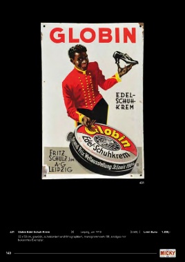 431 431 Globin Edel-Schuh-Krem (2) Leipzig, um 1910 (3.500,-) Limit Euro: 1.200,- 33 x 50 cm, gewölbt, schabloniert und lithographiert, monogrammiert: RR, einziges mir bekanntes Exemplar. 140