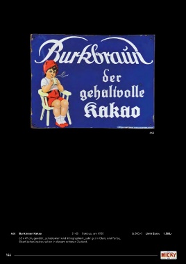 444 444 Burkbraun Kakao (1-2) Cottbus, um 1920 (4.000,-) Limit Euro: 1.500,- 65 x 49 cm, gewölbt, schabloniert und lithographiert, sehr gut in Glanz und Farbe, Oberflächenkratzer, selten in diesem schönen Zustand. 146
