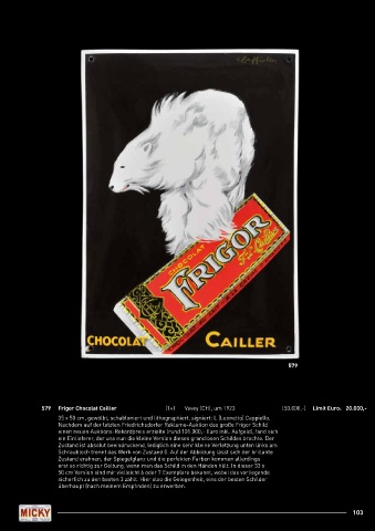 579 Frigor Chocolat Cailler (1+) Vevey (CH), um 1923 (50.000,-) Limit Euro: 20.000,-