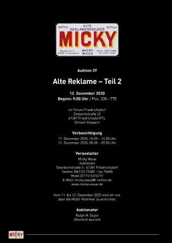 Beginn: 9:00 Uhr / Pos. 330 – 775