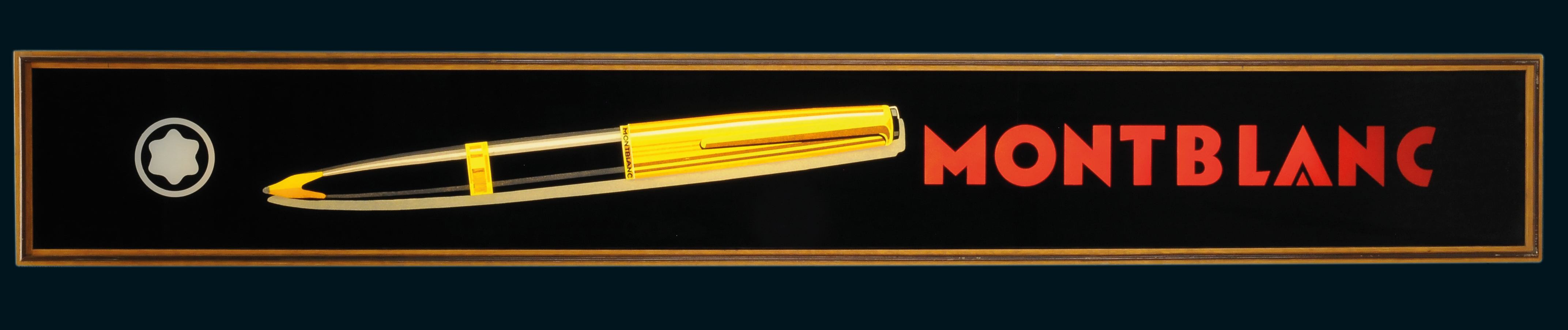 Montblanc Vitrinenleuchte 203 x 28 x 20 cm, Holzkorpus, Hinterglasdruck durchscheinend, 220 Volt, Neonröhre innen. Lampenaufsatz einer großen Ladenvitrine. Wir haben den Stecker in die Steckdose gesteckt und die Lampe funktionierte wunderbar. Das Licht scheint nach unten und lässt die Montblanc Reklame majestätisch erstrahlen. Eine traumhaft schöne Leuchte, die auch auf einem langen Tisch/Tresen/Sideboard oder auch auf dem Boden eine tolle Atmosphäre schafft. Der Zustand des Glases ist perfekt, das Holzgehäuse hat nur minimale Gebrauchsspuren, aber keine Beschädigungen. Stammt ebenso aus dem aufgelösten Laden in Frankfurt. Nur für Selbstabholer oder Sondervereinbarung. Weitere Bilder |